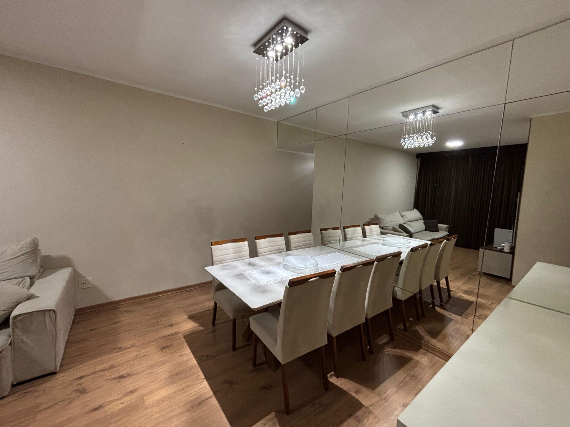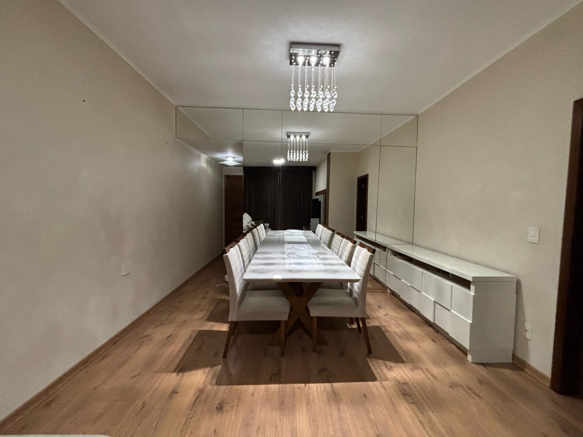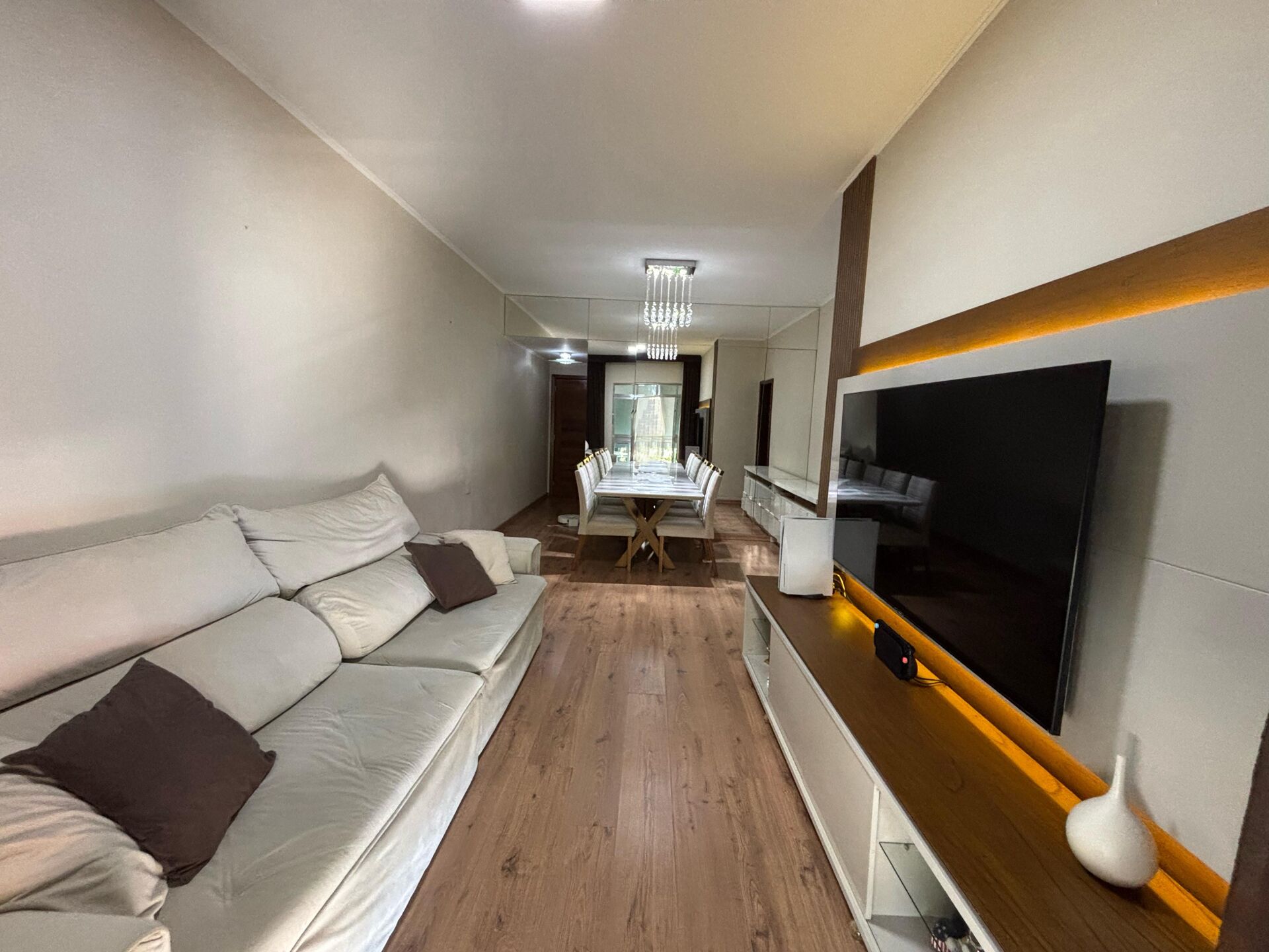 - Salão em dois ambientes, com teto rebaixado, iluminação planejada e piso laminado de alto padrão;