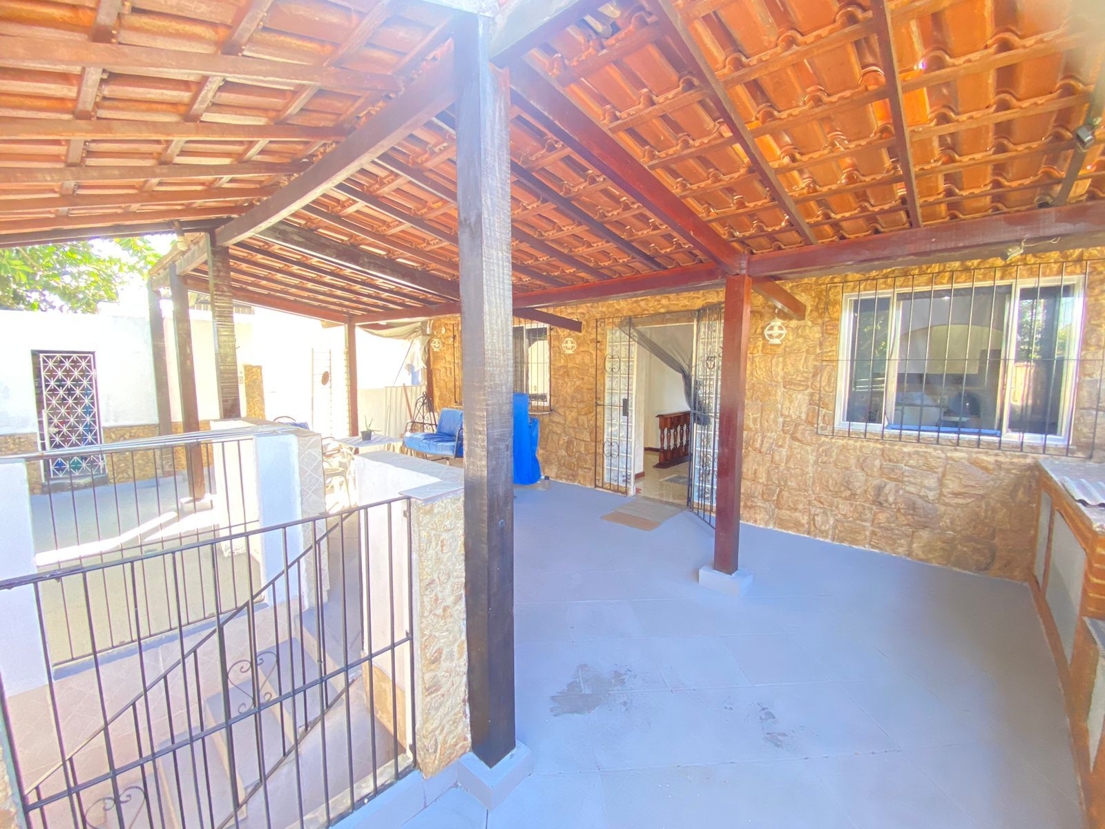 ✔ Varandão amplo na frente da casa com espaço gourmet completo, incluindo fogão a lenha;